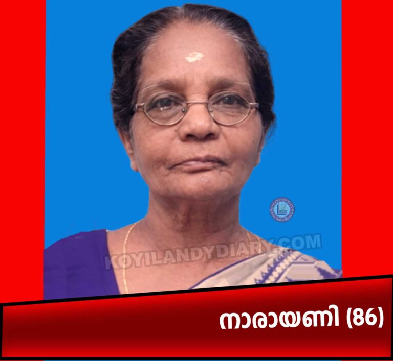 . കൊയിലാണ്ടി: മൂടാടി ഓടയിൽ നാരായണി (86) നിര്യാതയായി. ഭർത്താവ്: പരേതനായ അച്യുതൻ. മകൻ: ബാബു, മരുമകൾ: ബിന്ദു. സഹോദരങ്ങൾ: ബാലൻ, അശോകൻ, പുഷ്പ, പരേതനായ ദാമോദരൻ....
