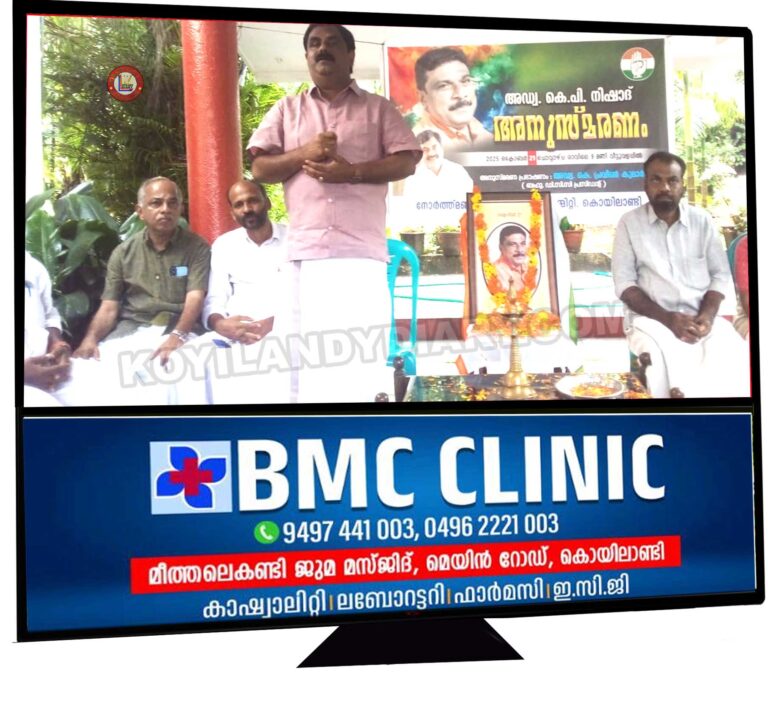 . കൊയിലാണ്ടി: കൊയിലാണ്ടി നോർത്ത് മണ്ഡലം കോൺഗ്രസ് പ്രസിഡണ്ടും സർവീസ് സഹകരണബാങ്ക് വൈസ് പ്രസിഡണ്ടുമായിരുന്ന അഡ്വ. കെ. പി. നിഷാദിന്റെ മൂന്നാം ചരമവാർഷികവും അനുസ്മരണവും ഡിസിസി പ്രസിഡണ്ട്...
