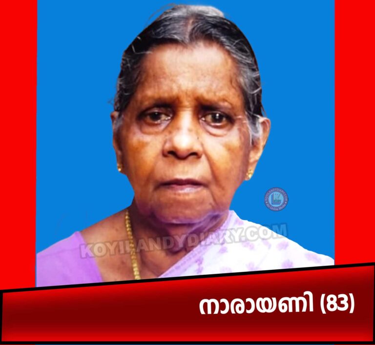 . കൊയിലാണ്ടി: ചേമഞ്ചേരി കരിവീട്ടിൽ നാരായണി (83) നിര്യാതയായി. ഭർത്താവ്: പരേതനായ ഭാസ്കരൻ. മക്കൾ: ഗോപിനാഥ്, സുജല. മരുമക്കൾ: രാജു (നെല്ല്യാടി), സബിത സഹോദരങ്ങൾ: പരേതരായ രാഘവൻ,...