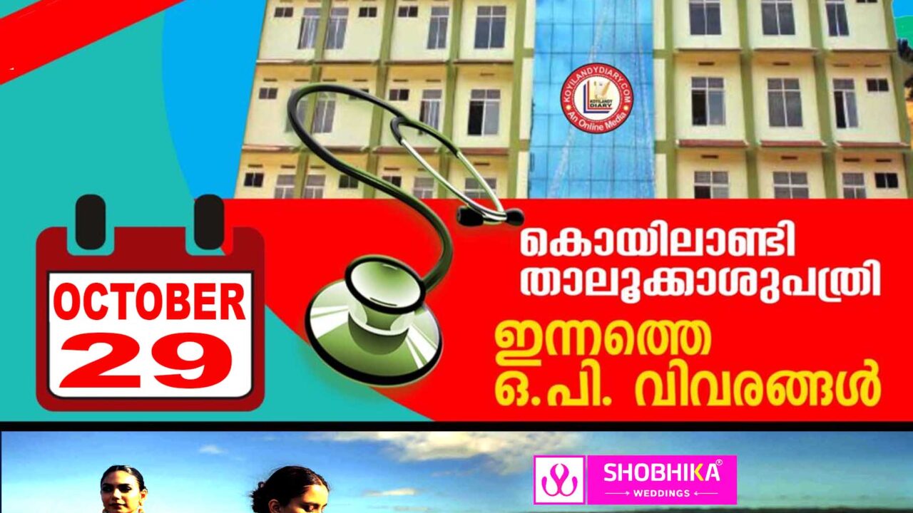 കൊയിലാണ്ടി താലൂക്കാശുപത്രിയിൽ ഒക്ടോബർ 20 തിങ്കളാഴ്ചത്തെ ഒ.പി.യിൽ ലഭിക്കുന്ന സേവനങ്ങളെക്കുറിച്ചുള്ള വിവരങ്ങൾ. താലൂക്കാശുപത്രിയിൽ ഇ-ഹെൽത്ത് പദ്ധതിയുടെ ഭാഗമായി ഇനി മുതൽ OP ടിക്കറ്റ് എടുക്കാൻ വരുന്നവർ ആധാർ കാർഡ്, മൊബൈൽ...