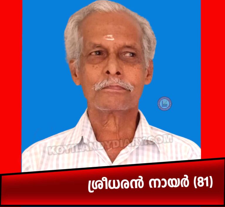. കൊയിലാണ്ടി: കൊല്ലം പടിഞ്ഞാറം വീട്ടിൽ ശ്രീധരൻ നായർ (81) (റിട്ട. മുൻസിഫ് കൊടതി കൊയിലാണ്ടി) നിര്യാതനായി. സംസ്ക്കാരം: ശനിയാഴ്ച ഉച്ചയ്ക്ക് 12 മണിക്ക് വീട്ടുവളപ്പിൽ. ഭാര്യ:...