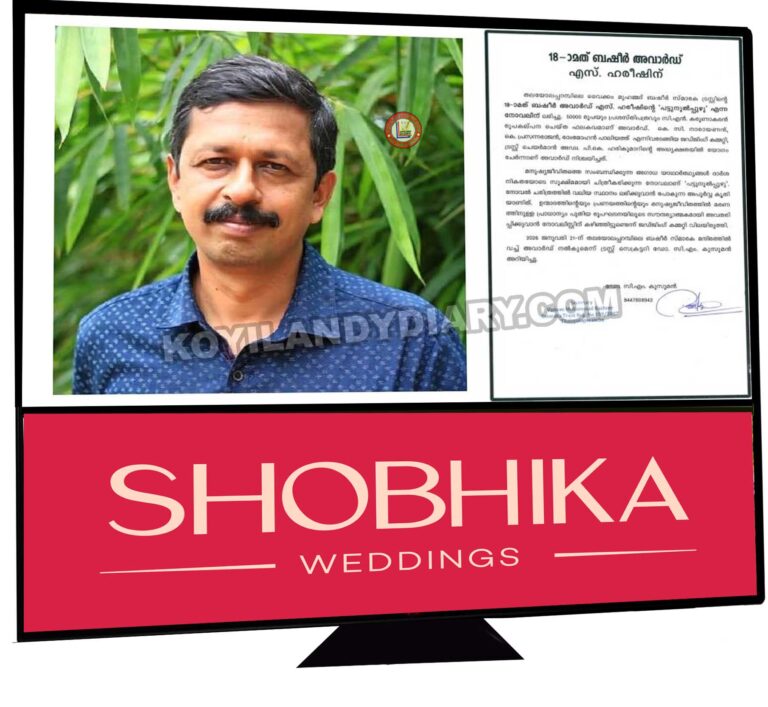 . പതിനെട്ടാമത് വൈക്കം മുഹമ്മദ് ബഷീർ സ്മാരക പുരസ്കാരം പ്രശസ്ത എഴുത്തുകാരൻ എസ്. ഹരീഷിന്. അദ്ദേഹത്തിന്റെ ‘പട്ടുനൂൽപ്പുഴു’ എന്ന നോവലിനാണ് അംഗീകാരം ലഭിച്ചത്. 50,000 രൂപയും ശില്പവും...