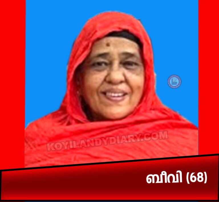 . കൊയിലാണ്ടി: പെരുവട്ടൂർ കുനിയിൽ ബീവി (68) നിര്യാതയായി. ഭർത്താവ്: പരേതനായ മഹമൂദ്. മക്കൾ: ജാഫർ (ഖത്തർ), റഷീദ് (മലേഷ്യ). മരുമക്കൾ: സമീറ, ജുനൈദ. സഹോദരൻ: ജെ....