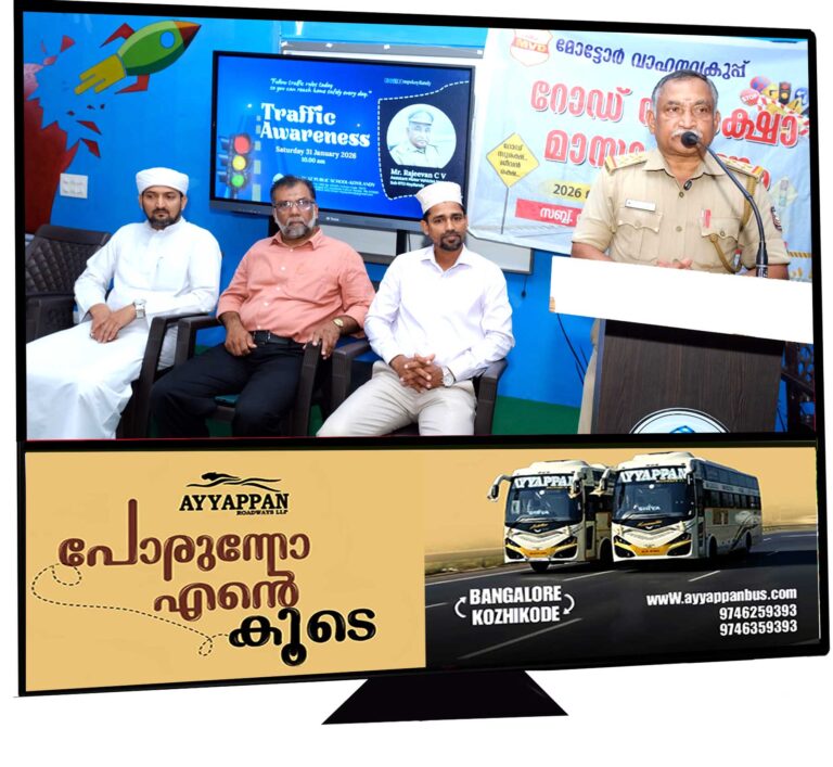 . കൊയിലാണ്ടി: കേരള സംസ്ഥാന മോട്ടോർ വാഹന വകുപ്പിന്റെ ആഭിമുഖ്യത്തിൽ നടക്കുന്ന റോഡ് സുരക്ഷാ മാസാചരണത്തിന്റെ ഭാഗമായി കൊയിലാണ്ടി മർക്കസ് പബ്ലിക് സ്കൂളിലെ വിദ്യാർത്ഥികൾക്ക് ട്രാഫിക് ബോധവൽക്കരണ...