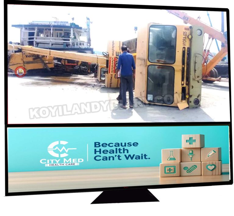 . കോഴിക്കോട്: ബേപ്പൂർ തുറമുഖത്ത് എത്തിയ ഉരുവിൽനിന്നും ഭാരമേറിയ യന്ത്രം ഇറക്കുന്നതിനിടെ ക്രെയിൻ മറിഞ്ഞു ഓപറേറ്റർക്ക് പരിക്കേറ്റു. ക്രെയിനിന്റെ ഇടയിൽ കുടുങ്ങിയ ഓപറേറ്റർ ശ്രീജിത്തിനെ ആശുപത്രിയിൽ പ്രവേശിപ്പിച്ചു....