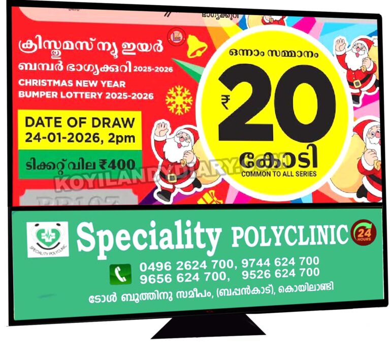 . ക്രിസ്തുമസ് പുതുവത്സര ബംമ്പർ നറുക്കെടുപ്പിൽ ഒന്നാം സമ്മാനം നേടിയത് XC 138455 എന്ന നമ്പറിന്. ഒന്നാം സമ്മാനം 20 കോടി രൂപയാണ്. ഒന്നാം സമ്മാനം ടിക്കറ്റ്...