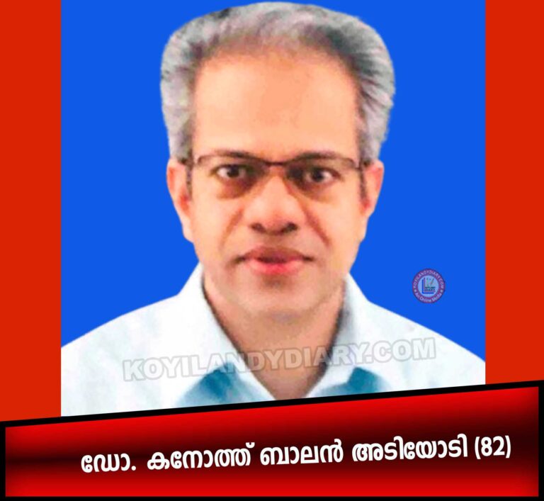 . പേരാമ്പ്ര: പേരാമ്പ്രയിലെ പ്രമുഖ ഇഎന്ടി വിദഗ്ദനും ജനകീയ ഡോക്ടറുമായ കെ ജി സദനത്തിൽ കനോത്ത് ഡോ. ബാലന് അടിയോടി (82) അന്തരിച്ചു. ദീര്ഘകാലം പേരാമ്പ്ര ശങ്കര്...