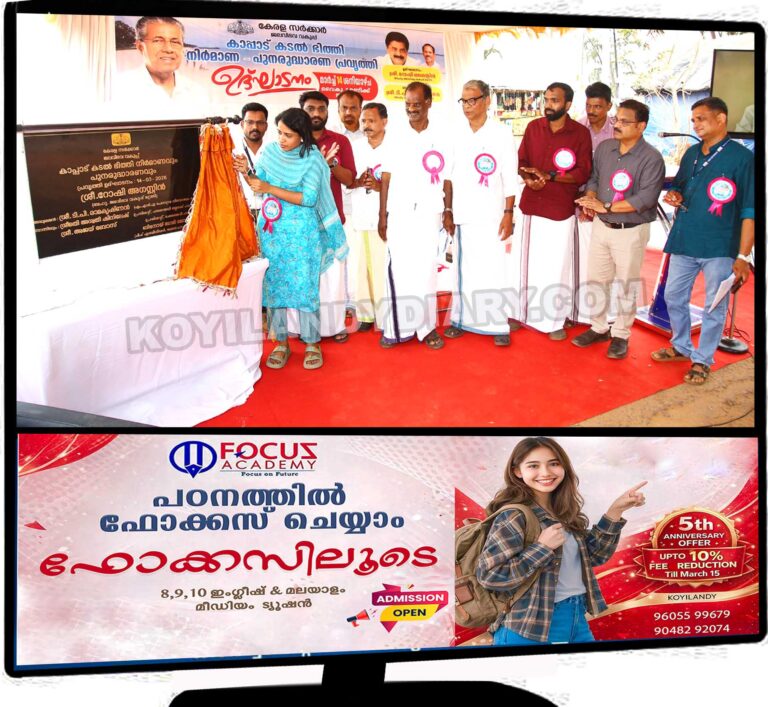 . ദീർഘകാലമായി തകർന്നു കിടന്ന കാപ്പാട് കടൽ ഭിത്തി നിർമ്മാണ പ്രവൃത്തി ജലവിഭവ വകുപ്പ് മന്ത്രി റോഷി അഗസ്റ്റിൻ ഓൺലൈനായി നിർവ്വഹിച്ചു. 2021 ൽ കടൽ ഭിത്തി...