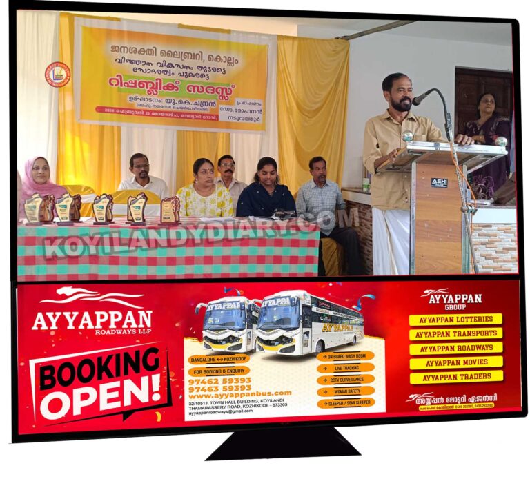 . കൊയിലാണ്ടി: കൊല്ലം ജനശക്തി ലൈബ്രറിയുടെ റിപ്പബ്ലിക് സദസ്സ് കൊയിലാണ്ടി നഗരസഭ ചെയർമാൻ യു. കെ. ചന്ദ്രൻ ഉദ്ഘാടനം ചെയ്തു. ലൈബ്രറി കൗൺസിൽ മേഖല സമിതി കൺവീനർ...