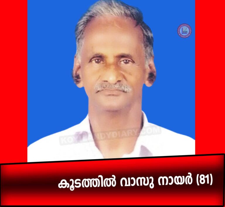 കൊയിലാണ്ടി: പെരുവട്ടൂർ ചെക്കോട്ടിബസാർ, കൂടത്തിൽ വാസു നായർ (81) നിര്യാതനായി. (കൊയിലാണ്ടി കോ-ഓപ്പ് ഡിപ്പാർട്ട്മെൻ്റ് മുൻ ജീവനക്കാരൻ) സംസ്ക്കാരം: രാത്രി 8.30ന് വീട്ടുവളപ്പിൽ. ഭാര്യ: പരേതയായ മാധവി...