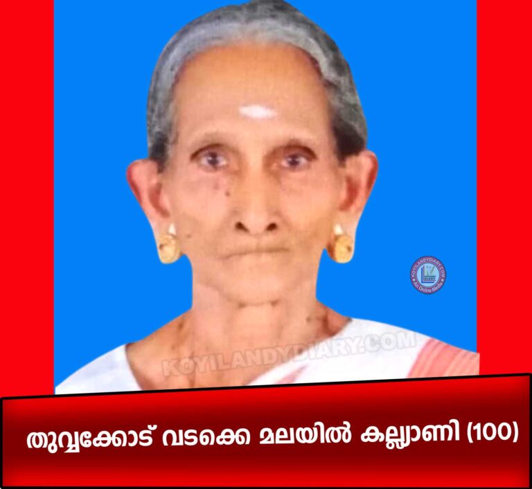 ചേമഞ്ചേരി: തുവ്വക്കോട് വടക്കെ മലയിൽ കല്യാണി (100) നിര്യാതയായി. ഭർത്താവ്: പരേതനായ രാമൻ. മക്കൾ: ജനത നാരായണൻ (ആർ.ജെ.ഡി പ്രവർത്തക), നാരായണി, ദേവി, ശാന്ത, മാലതി, പരേതനായ...
