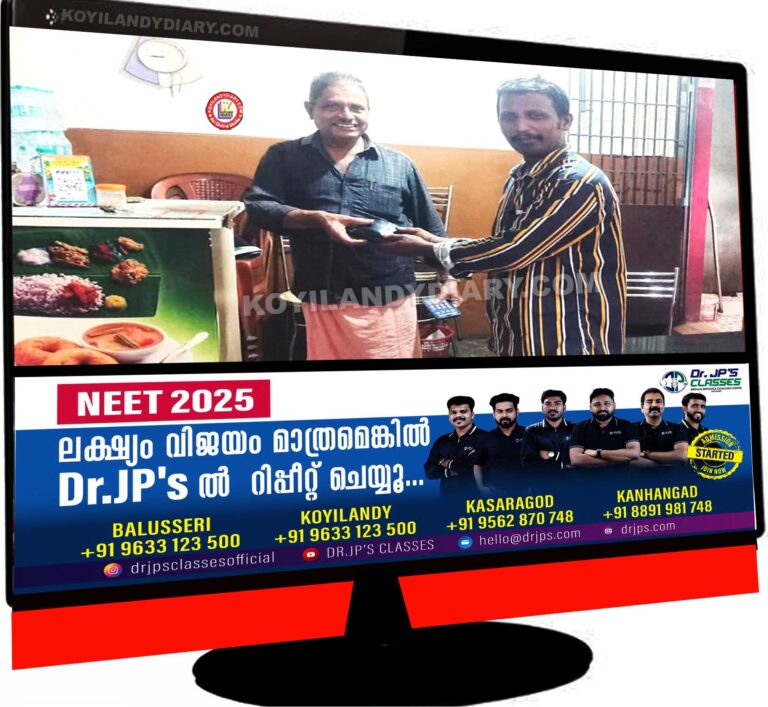 കൊയിലാണ്ടി മാർക്കറ്റ് പരിസരത്തുനിന്ന് കളഞ്ഞു കിട്ടിയ പണവും വിലപ്പെട്ട രേഖകളും അടങ്ങിയ പേഴ്സ് തിരികെ ഏൽപ്പിച്ച് മാതൃകയായി കൊയിലാണ്ടി രംഭ ഹോട്ടൽ ഉടമ പറവകൊടി കുഞ്ഞിരാമൻ. പുളിയഞ്ചേരി...