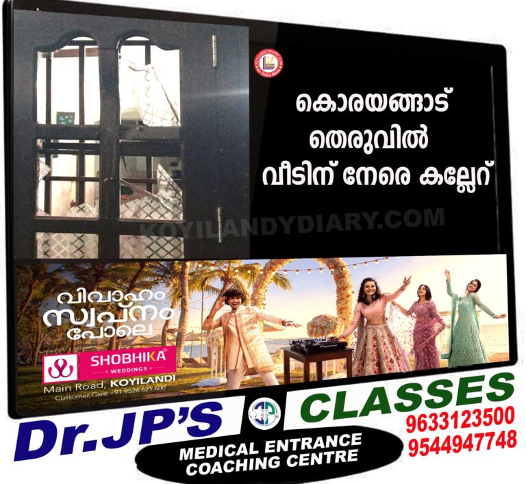 കൊയിലാണ്ടി: കൊരയങ്ങാട് തെരുവിൽ വീടിനു നേരെ കല്ലേറ്. ജനൽ ചില്ലുകൾ തകർന്നു. എടക്കോടൻ കണ്ടി ദിനേശൻ്റെ വീടിനു നേരെയാണ് കല്ലേറുണ്ടായത്. വ്യാഴാഴ്ച രാത്രി 11 മണിയോടെയാണ് സംഭവമെന്ന്...