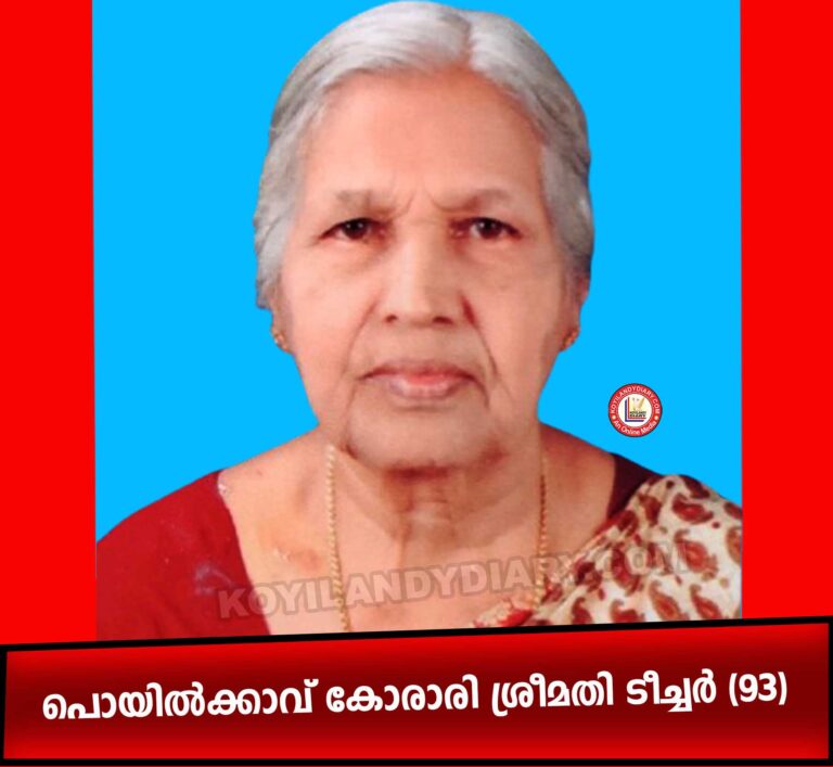 കൊയിലാണ്ടി: പൊയിൽക്കാവ് കോരാരി ശ്രീമതി ടീച്ചർ (93) നിര്യാതയായി. (റിട്ട. പ്രധാനധ്യാപിക, തലക്കുളത്തൂർ ശ്രീ ഗുരുദേവ വിലാസം എൽ. പി. സ്കൂൾ). ഭർത്താവ്: പരേതനായ വേലായുധൻ. മക്കൾ:...
