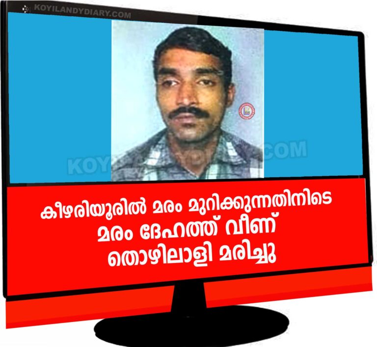 കീഴരിയൂർ: മരം മുറിക്കുന്നതിനിടെ മരം ദേഹത്ത് വീണു തൊഴിലാളി മരിച്ചു. കീഴരിയൂർ കുളങ്ങര മീത്തൽ ഷൗക്കത്ത് (44) ആണ് മരിച്ചത്. പരേതനായ മൂസ്സയുടെയും സൈനബയുടെയും മകനാണ്. ഭാര്യ: സഫിയ....