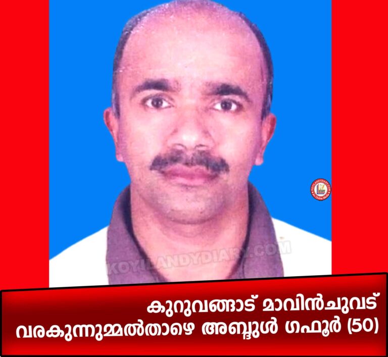 കൊയിലാണ്ടി: കുറുവങ്ങാട് മാവിൻ ചുവട്, വരകുന്നുമ്മൽ താഴെ അബ്ദുൾ ഗഫൂർ (50) നിര്യാതനായി. CPI(M) കുറുവങ്ങാട് മാവിൻ ചുവട് ബ്രാഞ്ച്അംഗമാണ്. ഭാര്യ: ജമീല. മക്കൾ: മുഹമ്മദ് സഹൽ,...