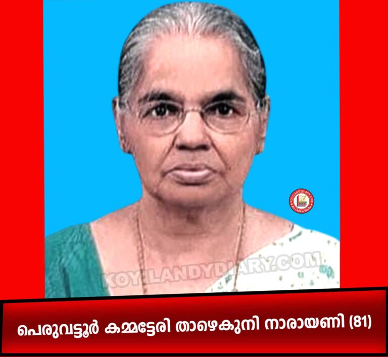 കൊയിലാണ്ടി: പെരുവട്ടൂർ കമ്മട്ടേരി താഴെകുനി നാരായണി (81) നിര്യാതയായി. ഭര്ത്താവ്: പരേതനായ തുമ്പക്കണ്ടി ശങ്കരന്. ശവസംസ്ക്കാരം വൈകീട്ട് 4 മണിക്ക് വീട്ടുവളപ്പിൽ. മക്കള്: സതീശന് കെ.കെ (ഐ.എച്ച്.ആര്.ഡി),...