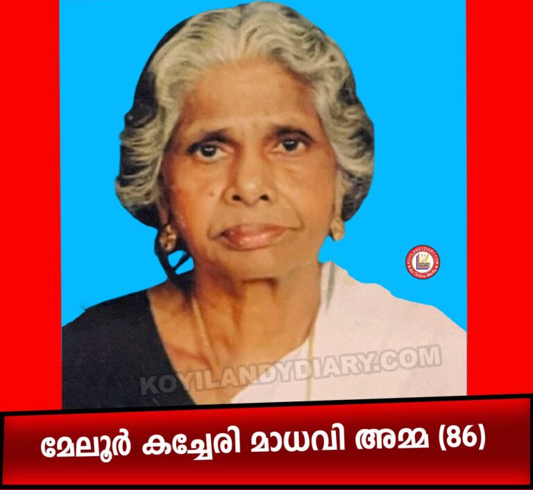 കൊയിലാണ്ടി മേലൂർ കച്ചേരി മാധവി അമ്മ (86) നിര്യാതയായി. ഭർത്താവ്: പരേതനായ മാധവൻ നായർ. മക്കൾ: രുക്മിണി, രാജാമണി, രജനി (എച്ച്.എം.ഗവൺമെൻറ് ഹയർ സെക്കൻഡറി സ്കൂൾ കോക്കല്ലൂർ),...