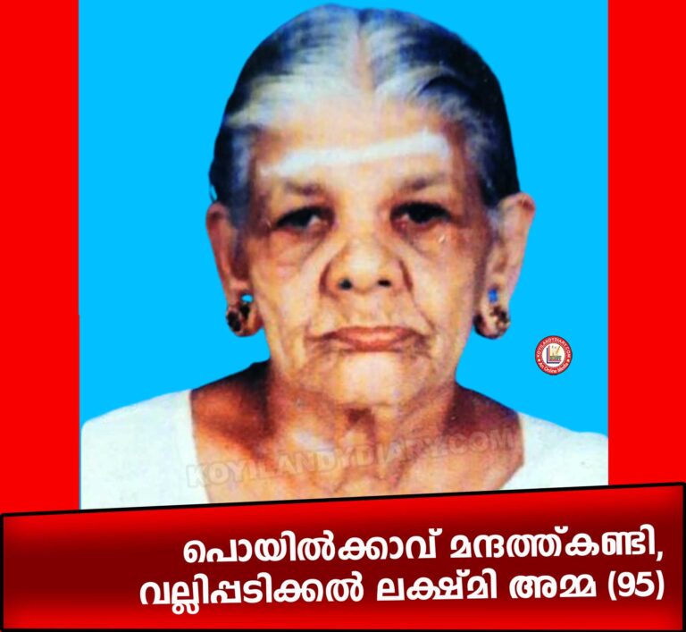പൊയിൽക്കാവ്: മന്ദത്ത്കണ്ടി താമസിക്കും വല്ലിപ്പടിക്കൽ ലക്ഷ്മി അമ്മ (95) നിര്യാതയായി. ഭർത്താവ്: പരേതനായ കുഞ്ഞിക്കണാരൻ നായർ. മക്കൾ: ജാനകി, ഗൗരി, രാധ, സുമ, പരേതനായ ഗോവിന്ദൻ. മരുമക്കൾ:...