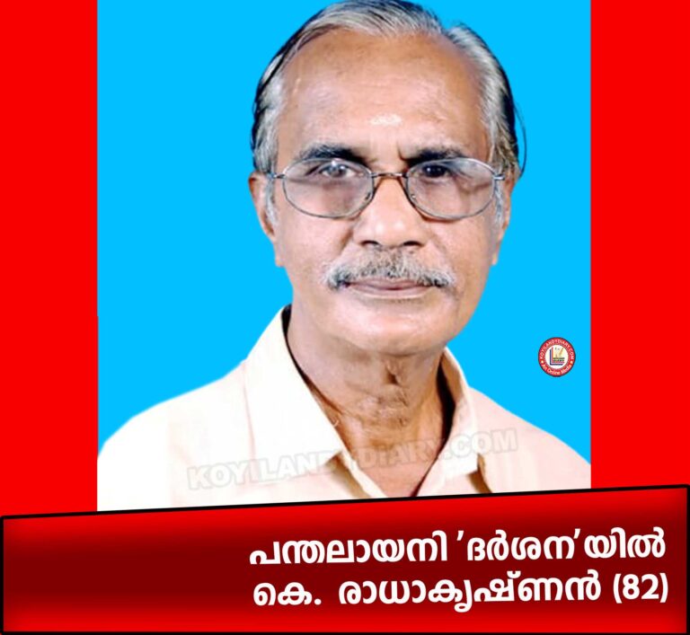 കൊയിലാണ്ടി: പന്തലായനി 'ദർശന' യിൽ കെ. രാധാകൃഷ്ണൻ (82) നിര്യാതനായി. (കൊയിലാണ്ടി ലക്ഷ്മി മെഡിക്കൽസ് ഉടമ, കേരള വ്യാപാരി വ്യവസായി സമിതി പ്രസിഡണ്ട്, എ.കെ.സി.ഡി.എ. ജില്ലാ പ്രസിഡണ്ട്....