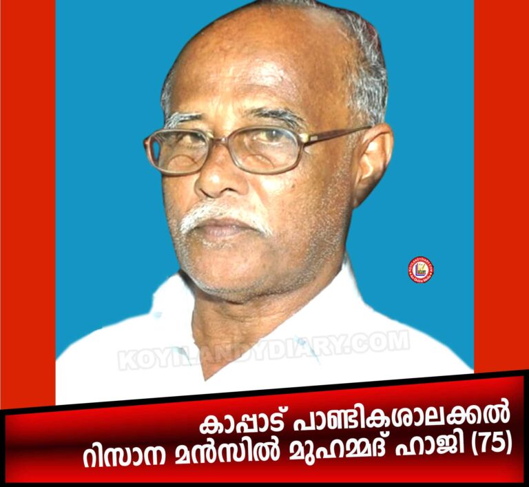 ചേമഞ്ചേരി: കാപ്പാട് ശാദി മഹലിന് സമീപം റിസാന മൻസിൽ താമസിക്കും പാണ്ടികശാലക്കൽ മുഹമ്മദ് ഹാജി (75) നിര്യാതനായി ഭാര്യ: സുബൈദ. മക്കൾ: റഹീം, റിക്സാന. സഹോദരങ്ങൾ: കുഞ്ഞായൻ,...