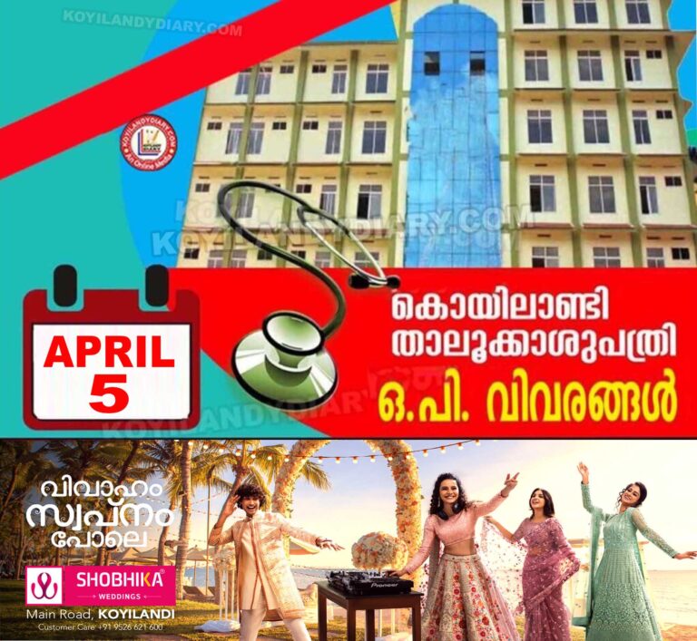 കൊയിലാണ്ടി സ്പെഷ്യാലിറ്റി പോളിക്ലിനിക്കിൽ ഏപ്രിൽ 06 ശനിയാഴ്ച പ്രവർത്തിക്കുന്ന ഒപികളും ഡോക്ടർമാരും സേവനങ്ങളും.. 1. ജനറൽ പ്രാക്ടീഷ്ണർ ഡോ : മുസ്തഫ മുഹമ്മദ് (8:30 am to...