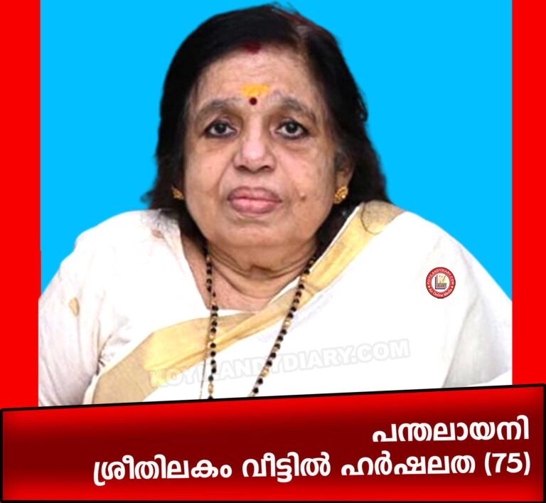 കൊയിലാണ്ടി: പന്തലായനി ശ്രീതിലകം വീട്ടിൽ ഹർഷലത (75) നിര്യാതയായി. പരേതരായ വയക്കര ഇല്ലത്ത് പത്മനാഭൻ നായരുടെയും, ഭാർഗവി അമ്മയുടെയും മകളാണ്. ഭർത്താവ് : എം ഗംഗാധരൻ നായർ...
