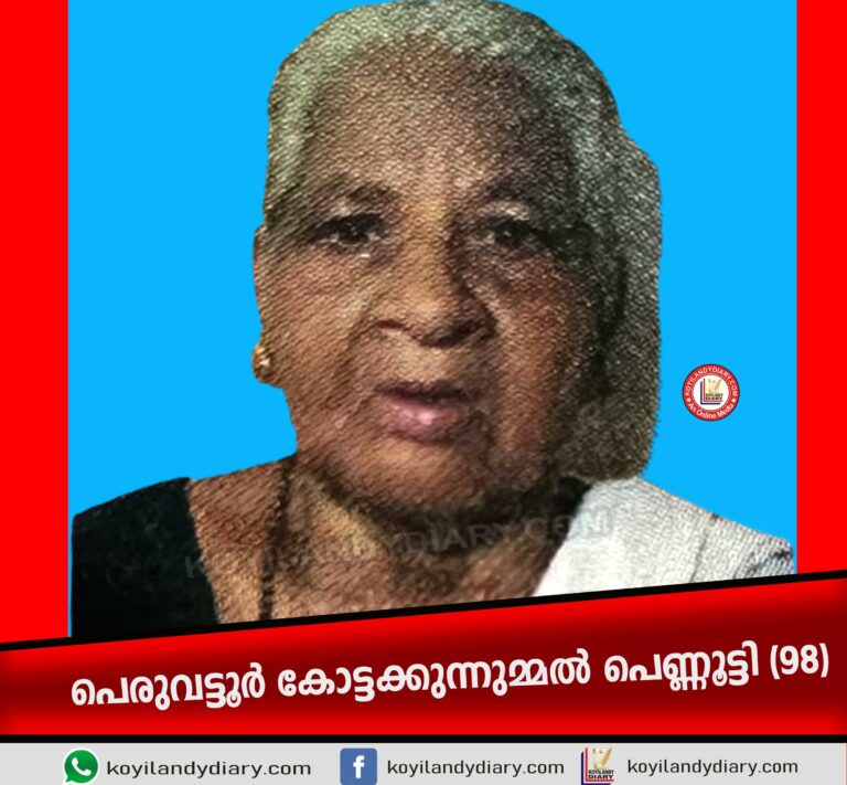 കൊയിലാണ്ടി: പെരുവട്ടൂർ കോട്ടക്കുന്നുമ്മൽ പെണ്ണൂട്ടി (98) നിര്യാതയായി. പരേതരായ കേശവൻകുട്ടിയുടെയും ചിരുതേയികുട്ടിയുടെയും മകളാണ്. സഹോദരങ്ങൾ: പരേതരായ കുഞ്ഞിപ്പാറ്റ, അമ്മാളു. സഹോദരി മകൻ: കേശവൻ കോട്ടക്കുന്നുമ്മൽ. സഞ്ചയനം: ഞായറാഴ്ച.