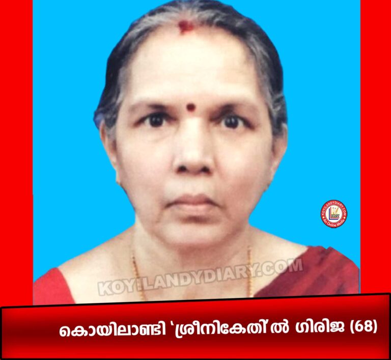 കൊയിലാണ്ടി: കൊയിലാണ്ടി സിവിൽ സ്റ്റേഷന് സമീപം 'ശ്രീനികേതി'ൽ ഗിരിജ (68) നിര്യാതയായി. മുൻ മഞ്ചേരി എംഎൽഎ പരേതനായ എം. ചടയൻ്റെ മകളാണ്. ഭർത്താവ്: ഡോ. കെ കരുണാകരൻ...