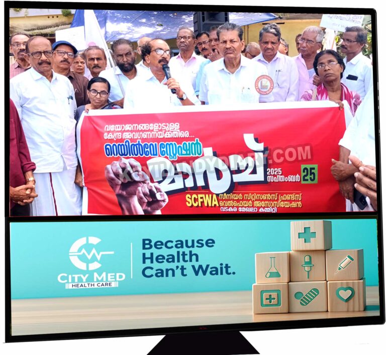വടകര: വയോജനങ്ങൾക്കുള്ള റെയിൽവേ യാത്ര ഇളവ് പുനസ്ഥാപിക്കുക, കേന്ദ്രവയോജന നയം കാലാനുസൃതമായി പരിഷ്കരിക്കുക, കേന്ദ്ര വയോജന പെൻഷൻ 5000 രൂപയായി വർദ്ധിപ്പിക്കുക തുടങ്ങിയ ആവശ്യങ്ങൾ ഉന്നയിച്ച് സീനിയർ...