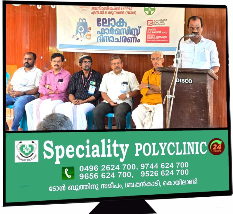 കൊയിലാണ്ടി: വേൾഡ് ഫാർമസിസ്റ്റ് ഡേ ആചരിച്ചു. പൊതുജനരോഗ്യ രംഗത്ത് ഫാർമസിസ്റ്റുകളുടെ സേവനം വിലപ്പെട്ടതും നമ്മുടെ ജനകീയാരോഗ്യത്തിൻ്റെ സുരക്ഷിതത്വത്തിന് ഏറെ അനിവാര്യമായതാണെന്നും മുൻ എം.എൽ.എ കെ. ദാസൻ അഭിപ്രായപ്പെട്ടു....