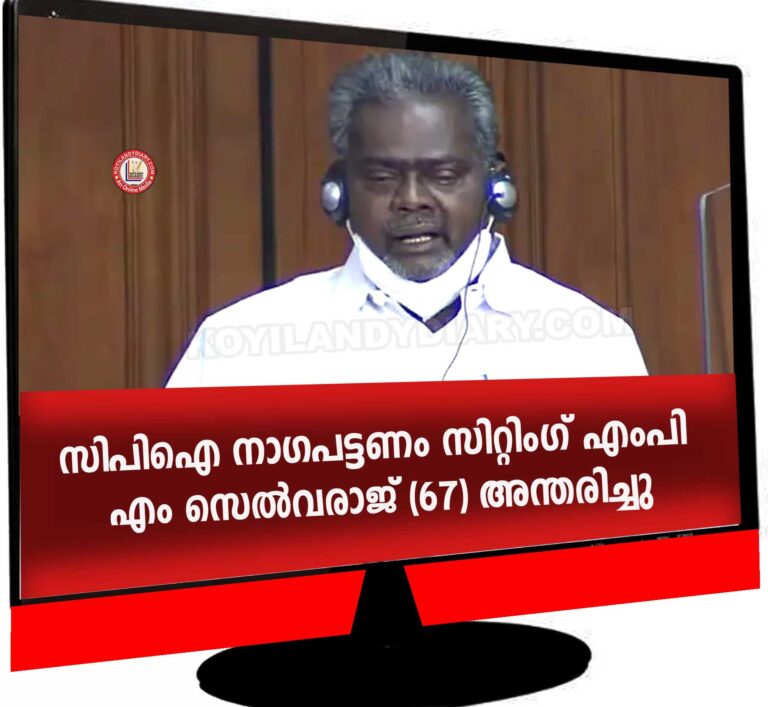 സിപിഐ നാഗപട്ടണം സിറ്റിംഗ് എംപി എം സെൽവരാജ് (67) അന്തരിച്ചു. ശ്വാസകോശ സംബന്ധമായ അസുഖത്തെ തുടർന്ന് ചികിത്സയിലായിരുന്നു. ചെന്നൈയിലെ സ്വകാര്യ ആശുപത്രിയിലായിരുന്നു അന്ത്യം. നാല് തവണ ലോക്സഭാ...