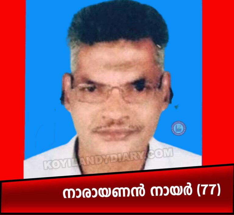 . കൊയിലാണ്ടി: പന്തലായനി ചെറുവീട്ടിൽ വിശ്വനാഥൻ നായർ (74) നിര്യാതനായി. ഭാര്യ: ശാന്ത നടുവണ്ണൂർ. മകൾ: അമൃത.