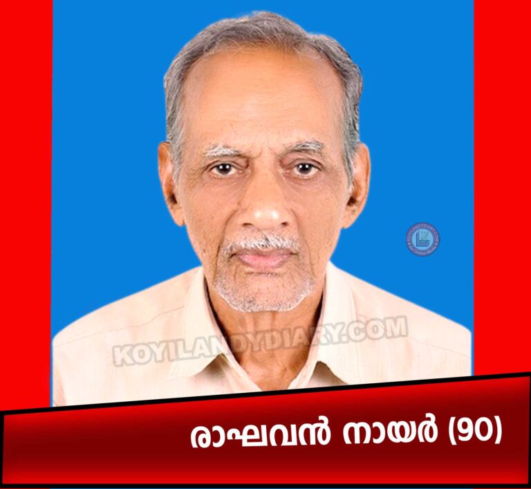 . കൊയിലാണ്ടി: ചേമഞ്ചേരി തട്ടാണ്ടി രാഘവൻ നായർ (90) (റിട്ട. സ്റ്റേഷൻ മാസ്റ്റർ) നിര്യാതനായി. ഭാര്യ: രാധ (റിട്ട. ടീച്ചർ). മക്കൾ: രാജേഷ് (റിട്ട ആർമി), ലാൽജിത്...