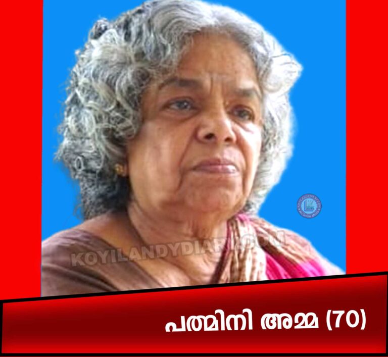 . കൊയിലാണ്ടി: ചെങ്ങോട്ടുകാവ് ഞാണംപൊയിൽ തയ്യലത്ത് തിരുമാല അമ്മ (84) നിര്യാതയായി. ഭർത്താവ്: പരേതനായ ചോയിക്കുട്ടി. മക്കൾ: ദാമോാദരൻ, ബാബു, ശിവൻ, ലളിത, അനിത. മരുമക്കൾ: ബിന്ദു,...