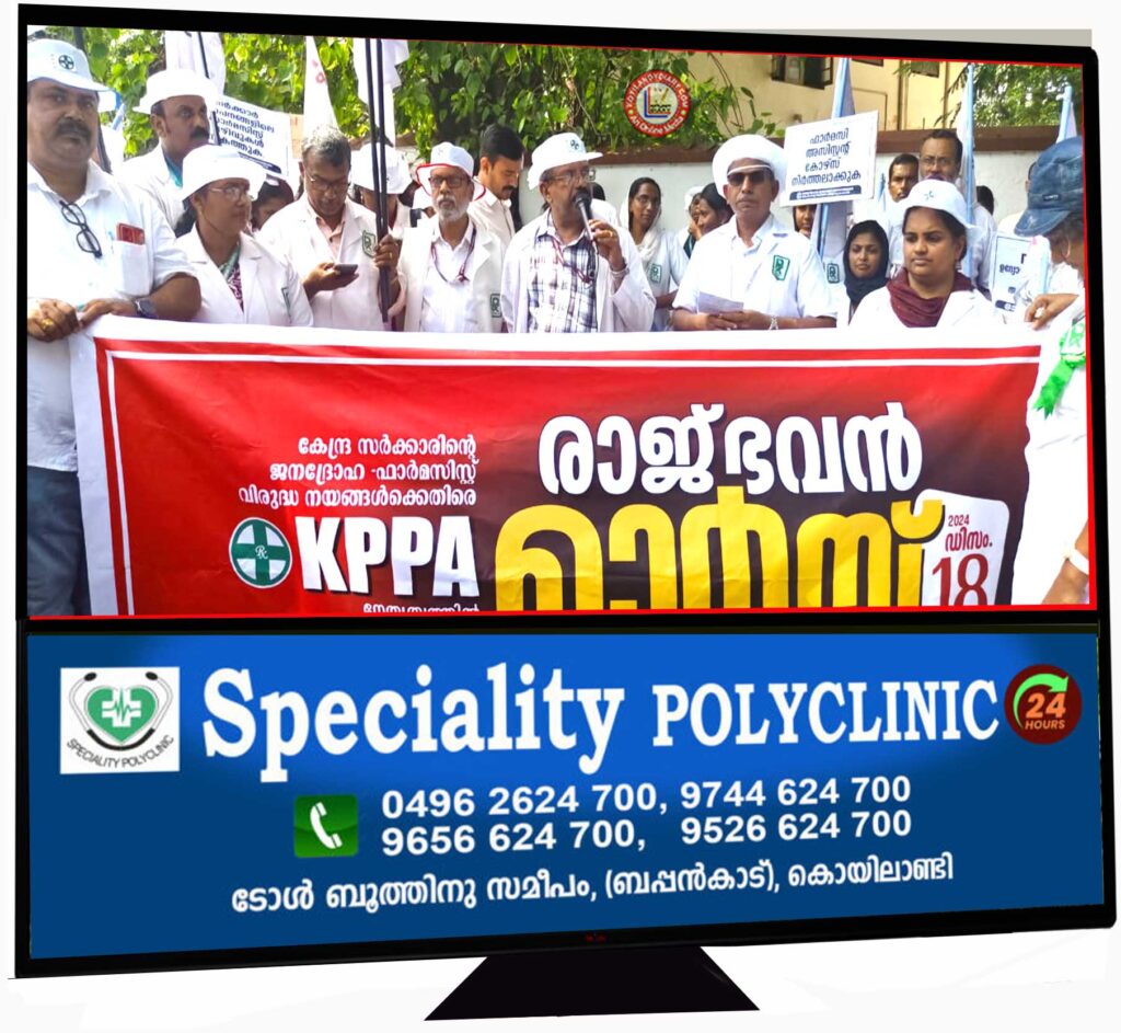 കട വാടകയ്ക്ക് ഏർപെടുത്തിയ GST പിൻവലിക്കുക, ഔഷധ മന്ത്രാലയം രൂപീകരിക്കുക, ഓൺലൈൻ ഫാർമസി നിർത്തലാക്കുക, അസിസ്റ്റൻ്റ് ഫാർമസി കോഴ്സ് നിർത്തലാക്കുക. തുടങ്ങിയ ആവശ്യങ്ങൾ മുന്നോട്ട് വെച്ച് നടത്തിയ മാർച്ചിൽ സംഘടന സംസ്ഥാന പ്രസിഡൻറ് യോഹന്നാൻ കുട്ടി അധ്യക്ഷത വഹിച്ചു.