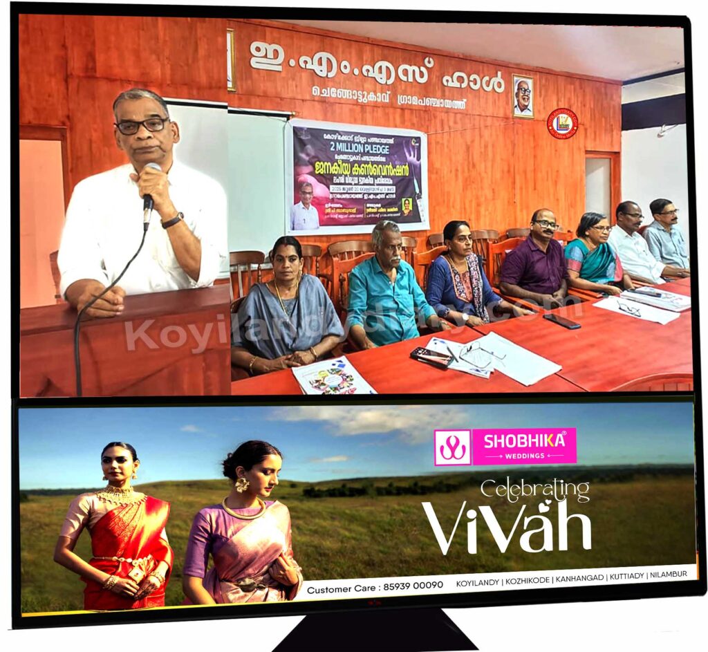 കോഴിക്കോട് ജില്ലാ പഞ്ചായത്തിൻ്റെ ആഭിമുഖ്യത്തിൽ ലഹരിക്കെതിരെ 2025 ജൂൺ 26ന് നടക്കുന്ന 2 മില്യൻ പ്ലഡ്ജ് വിജയിപ്പിക്കുന്നതിനായി ചെങ്ങോട്ടുകാവ് ഗ്രാമപഞ്ചായത്ത്തല ജനകീയ കൺവെൻഷൻ നടത്തി. ഗ്രാമപഞ്ചായത്ത് പ്രസിഡണ്ട് ഷീബ മലയിലിന്റെ അദ്ധ്യക്ഷതയിൽ പന്തലായനി ബ്ലോക്ക് പഞ്ചായത്ത് പ്രസിഡണ്ട് പി ബാബുരാജ് ഉദ്ഘാടനം നിർവ്വഹിച്ചു.