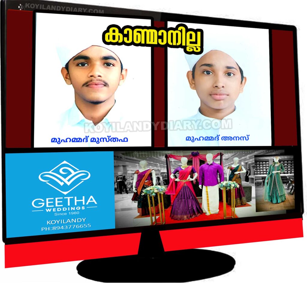 തമിഴ്നാട് ഡൂഡല്ലൂർ, നീലഗിരി, ചെറുമുള്ളി കുത്രമൂർച്ച സിദ്ധീഖിൻ്റെ മകൻ മുഹമ്മദ് അനസ് (16), മലപ്പുറം, പരപ്പനങ്ങാടി, ഫഹ്മാൻ നാഗർ കുണ്ടത്തിൽ വീട്ടിൽ, അമ്പാടി നഗർ മുജീബ് റഹ്മാൻ്റെ മകൻ മുഹമ്മദ് മുസ്തഫ (16) എന്നീ വിദ്യാർത്ഥികളെയാണ് കാണാതായത്. എന്തെങ്കിലും വിവരം കിട്ടുന്നവർ താഴെ കൊടുത്തിരിക്കുന്ന നമ്പറിൽ വിളിക്കുവാൻ താല്പര്യം. 9497987194 ( ഇൻസ്പെക്ടർ, ബാലുശ്ശേരി), 9497980755 (എസ്. ഐ. ബാലുശ്ശേരി), 04962642040 (ബാലുശ്ശേരി പോലീസ് സ്റ്റേഷൻ).