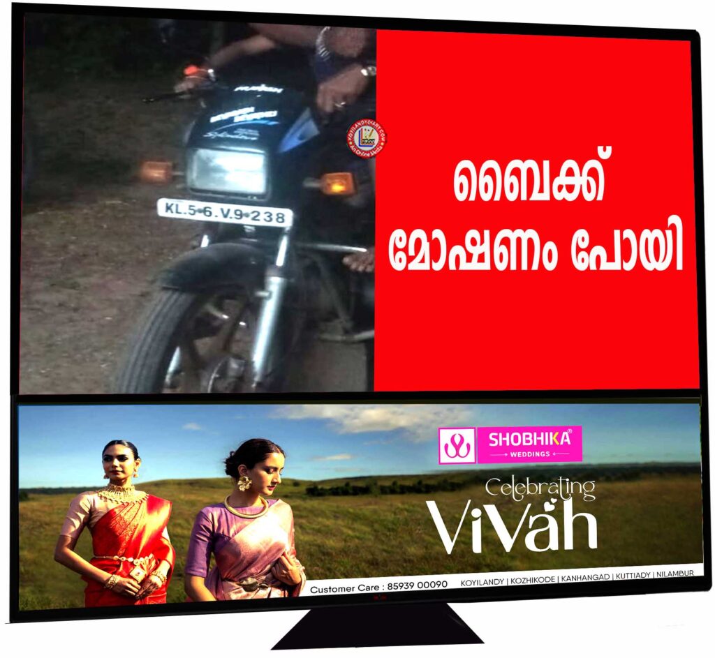 കൊയിലാണ്ടി: കൊല്ലം വിയ്യൂർ സ്വദേശിയുടെ ബൈക്ക് മോഷണം പോയതായി പരാതി. എളമ്പിലാട് ക്ഷേത്ര പരിസരത്ത് വെച്ച് ഫിബ്രവരി 6ന് രാത്രി 9.30നും 1.30നും ഇടയിലാണ് KL 56 V 9238 ഹീറോ ഹോണ്ട സ്പ്ലെണ്ടർ പ്ലസ് ബൈക്ക് മോഷണം പോയതെന്ന് വാഹന ഉടമ കൊയിലാണ്ടി പോലീസിൽ പരാതിപ്പെട്ടു. കണ്ടു കിട്ടുന്നവർ കൊയിലാണ്ടി പോലീസ് സ്റ്റേഷനിലെ 0496 2620 236 എന്ന നമ്പറിലോ, 9495387418 (പ്രജിലേഷ്) എന്ന നമ്പറിലോ അറിയിച്ചേണ്ടതാണ്.