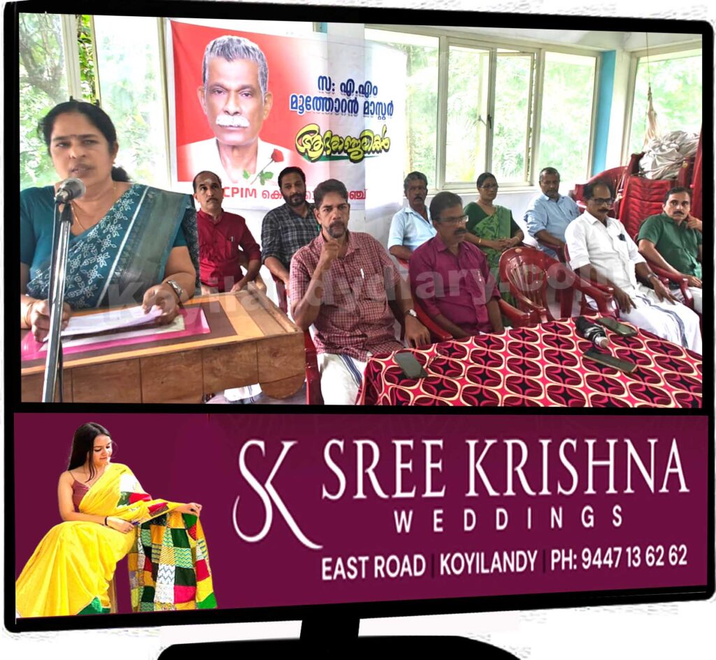 ചേമഞ്ചേരി: മുതിർന്ന സിപിഐഎം നേതാവും മുൻ ചേമഞ്ചേരി ലോക്കൽ കമ്മിറ്റി അംഗവുമായ സഖാവ് എ എം മൂത്തോറൻ മാസ്റ്ററുടെ നിര്യാണത്തിൽ അനുശോചനം രേഖപ്പെടുത്തി. കൊളക്കാട് ഹൈ ടെക് അംഗൻവാടിയിൽ വെച്ച് ചേർന്ന അനുശോചന യോഗത്തിൽ ഗ്രാമ പഞ്ചായത്ത് പ്രസിഡൻ്റ് സതി കിഴക്കെയിൽ അദ്ധ്യക്ഷത വഹിച്ചു. സിപിഎം ഏരിയ കമ്മിറ്റി അംഗം കെ. രവീന്ദ്രൻ മാസ്റ്റർ അനുശോചന പ്രമേയം അവതരിപ്പിച്ചു.