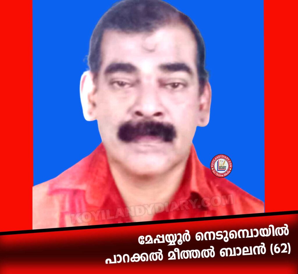 മേപ്പയ്യൂർ നെടുമ്പൊയിലിൽ ദമ്പതിമാർ വിഷം കഴിച്ചു; ഭർത്താവ് മരിച്ചു. പാറയ്ക്കൽ മീത്തൽ ബാലൻ (61) ആണ് മരിച്ചത്., ഭാര്യ ഗീത മെഡിക്കൽ കോളജിൽ ചികിത്സയിലാണ്. ഇരുവരെയും ആശുപത്രിയിലെത്തിച്ചെങ്കിലും ബാലന്റെ ജീവൻ രക്ഷിക്കാനായില്ല.