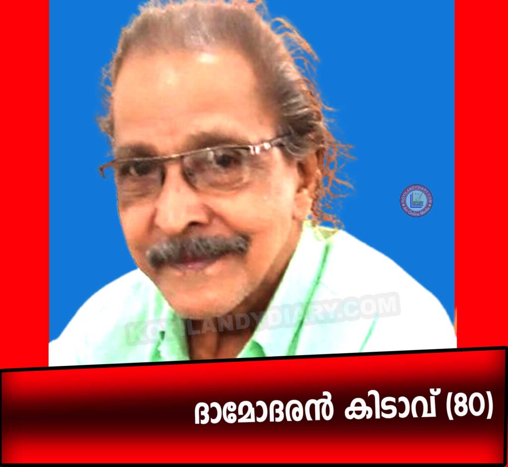 ചേമഞ്ചേരി കുന്നാടത്ത് ദാമോദരൻ കിടാവ് (80) നിര്യാതനായി. ഭാര്യ: വത്സല (റിട്ട: നേഴ്സിങ്ങ് അസിസ്റ്റൻ്റ് മെഡിക്കൽ കോളേജ്). മക്കൾ: ദിലീപ് (കംഫർട്ട് ട്രാവൽസ്), ദിവ്യ (റിലേക്സ് ട്രാവൽസ് പൂക്കാട്). മരുമക്കൾ : രഞ്ജുഷ (കക്കോടി), ജയപ്രകാശ് (ചേലിയ). സഞ്ചയനം: വ്യാഴാഴ്ച.