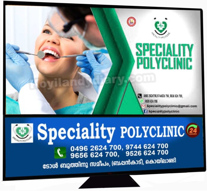 കൊയിലാണ്ടി സ്‌പെഷ്യാലിറ്റി പോളിക്ലിനിക്കിൽ ദന്തരോഗ വിഭാഗം രാവിലെ 9.00 മുതൽ വൈകുന്നേരം 7.30 വരെ