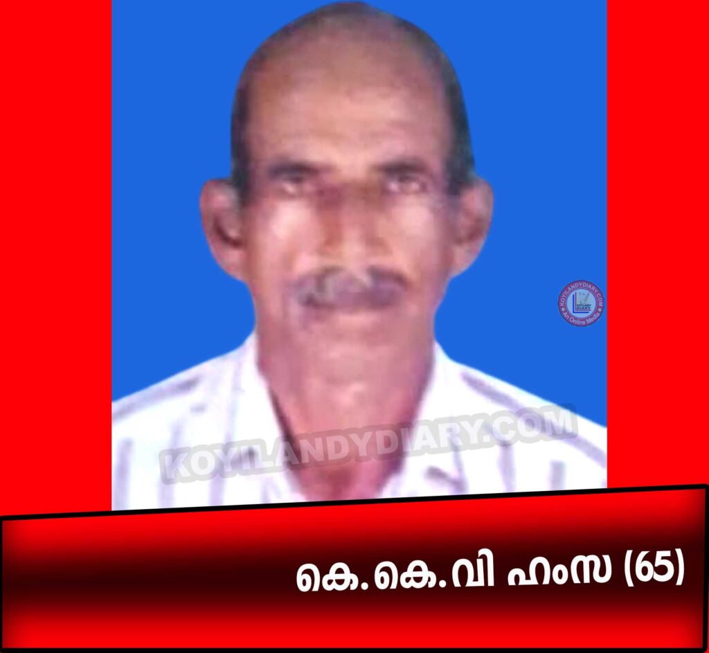 കൊയിലാണ്ടി: ചാലിൽ പറമ്പിൽ താമസിക്കും കോയാൻ്റെ വളപ്പിൽ കെ.കെ.വി. ഹംസ (65) നിര്യാതനായി. ഹാർബറിൽ നിന്നും ബദർ എന്ന തോണിയിൽ മത്സ്യബന്ധനത്തിടയിൽ ദേഹാസ്വാസ്ഥ്യം ഉണ്ടായതിനെ തുടർന്ന് കൂടെയുള്ളവർ താലൂക്ക് ആശുപത്രിയിൽ എത്തിച്ചശേഷം ചികിത്സയിലിരിക്കെ മരണമടയുകയായിരുന്നു. പരേതനായ അബ്ദുള്ളക്കുട്ടിയുടെയും. അലീമയുടെയും മകനാണ്. ഭാര്യ ആയിഷ. മക്കൾ: ഷംസുദ്ദീൻ, ഷബീർ. സഹോദരങ്ങൾ, മുഹമ്മദ് കെ.കെ.വി., പാത്തുമ്മ, പരേതനായ മൊയ്തീൻ.