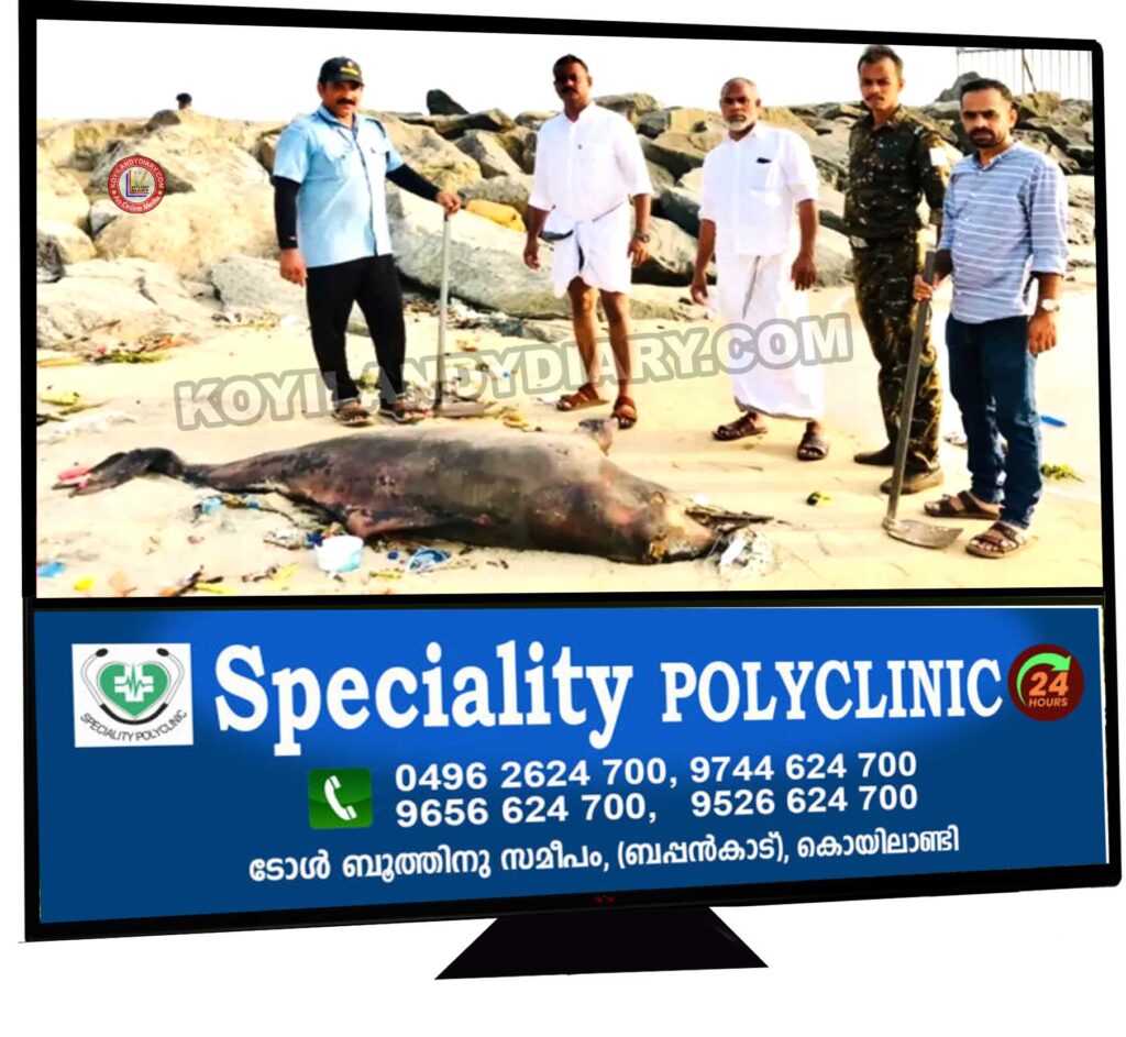 വടകര സാൻഡ് ബാങ്ക്സ് തീരത്ത് ഡോൾഫിൻ അടിഞ്ഞു