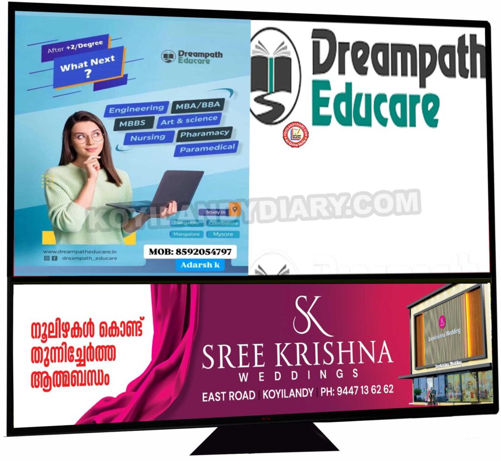 കോഴിക്കോട്: വിദ്യാർത്ഥികളുടെയും രക്ഷിതാക്കളുടെയും ആശങ്ക അകറ്റാനും സ്കോളർഷിപ്പിനും, അഡ്മിഷൻ ഉറപ്പ് വരുത്താനും Dreampath educare പ്രവർത്തനം ആരംഭിച്ചു. +2, ഡിഗ്രി പഠനശേഷം മെഡിക്കൽ, പരാ മെഡിക്കൽ, മാനേജ്മെൻ്റ്, എഞ്ചിനീയറിംഗ്, ആർട്ട് & സയൻസ്, നഴ്സിംഗ്  മുതലായ കോഴ്സുകൾക്ക് ഇന്ത്യയിലെ പ്രധാനപ്പെട്ട നഗരങ്ങളായ ബംഗ്ലൂർ, കോയമ്പത്തുർ, മംഗ്ലൂർ, മൈസൂർ എന്നിവിടങ്ങളിൽ. ഫോൺ: 859205497