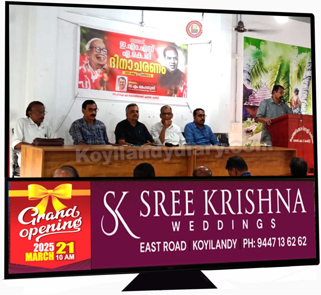 കൊയിലാണ്ടിയിൽ: ഇഎംഎസ് – എ.കെ.ജി ദിനാചരണം നടത്തി. സിപിഐ(എം) കൊയിലാണ്ടി ഏരിയാ കമ്മിറ്റി നേതൃത്വത്തിൽ നടന്ന പരിപാടി ജില്ലാ സെക്രട്ടറി എം. മെഹബൂബ് ഉദ്ഘാടനം ചെയ്തു. കൊയിലാണ്ടി ചെത്ത്തൊഴിലാളി മന്ദിരത്തിൽ വെച്ച് നടന്ന പരിപാടിയിൽ ജില്ലാ കമ്മറ്റി അംഗം അഡ്വ. എൽ.ജി. ലിജീഷ് അദ്ധ്യക്ഷതവഹിച്ചു.