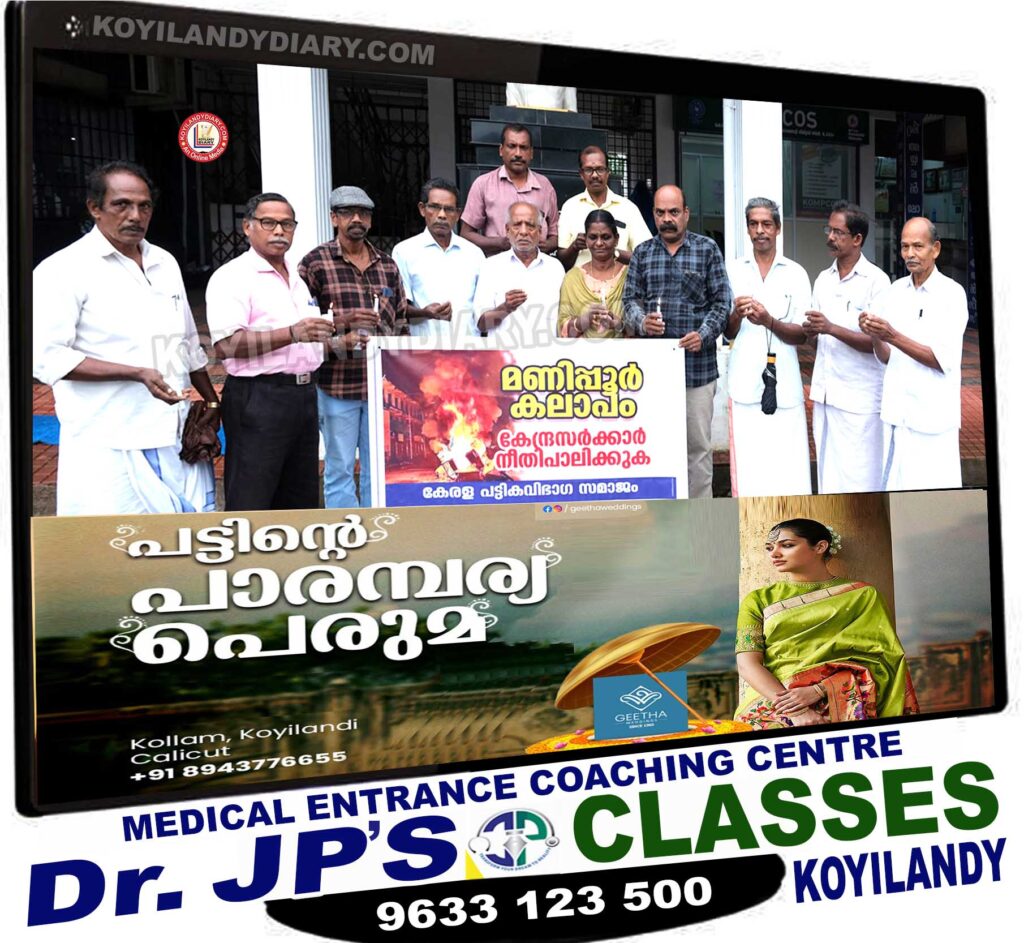 കൊയിലാണ്ടി: മണിപ്പൂരിലെ ആദിവാസികൾക്ക് നീതി ലഭിക്കുന്നതിന് കലാപം അവസാനിപ്പിക്കാൻ കേന്ദ്ര സർക്കാർ അടിയന്തരമായി ഇടപെടണമെന്നും, രാജ്യത്തുടനീളം ദളിതർക്ക് നേരെ നടക്കുന്ന അക്രമങ്ങളിൽ ശക്തമായ നടപടി വേണമെന്നും. കേരള പട്ടിക വിഭാഗ സമാജത്തിൻ്റെ ആഭിമുഖ്യത്തിൽ കൊയിലാണ്ടിയിൽ പ്രകടനവും പ്രതിഷേധ ജ്വാലയും നടത്തി.