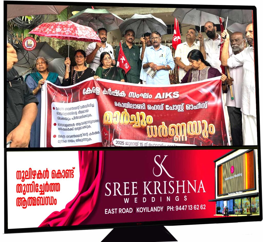 കേന്ദ്ര കർഷക ദ്രോഹ നയത്തിനെതിരെ കർഷക സംഘം കൊയിലാണ്ടി പോസ്റ്റ് ഓഫീസ് മാർച്ചും ധർണ്ണയും നടത്തി