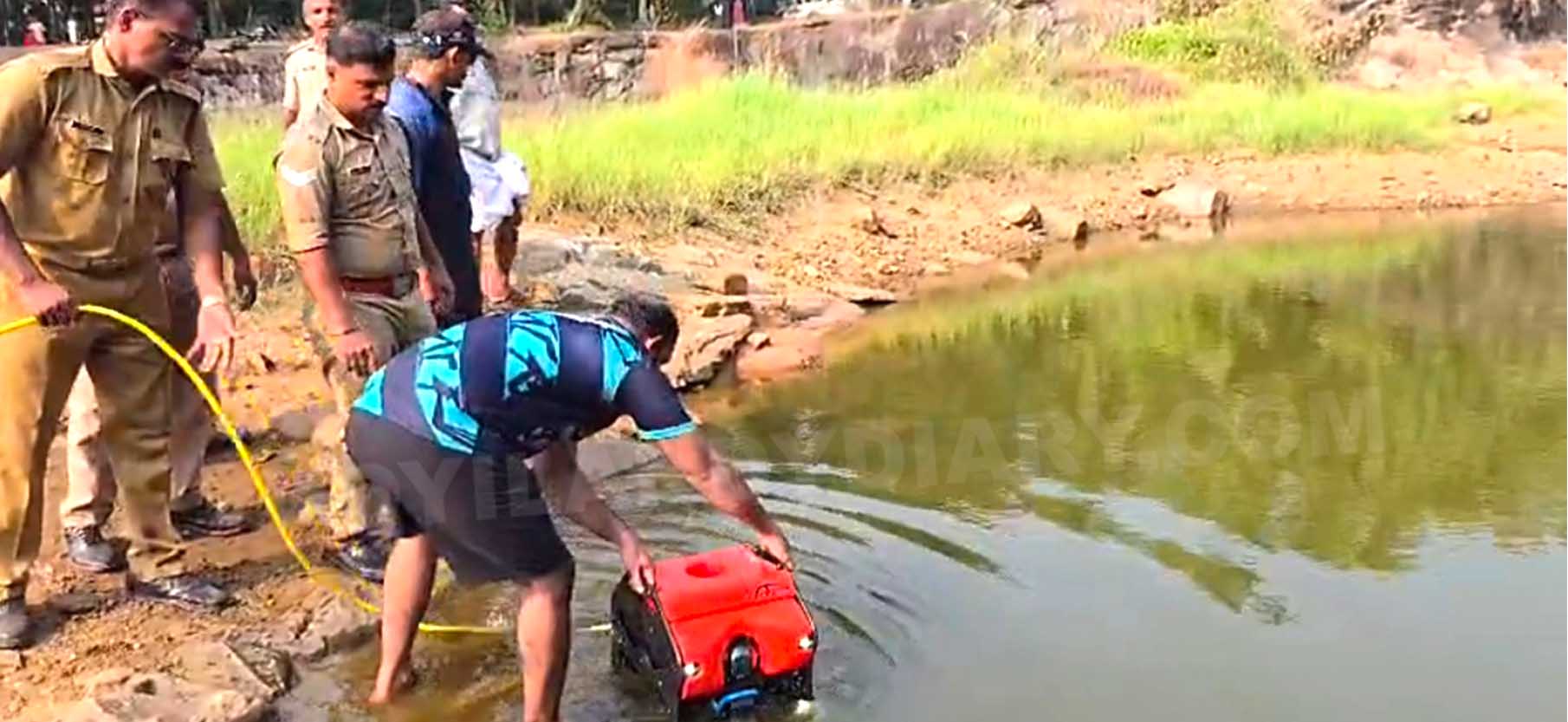 അന്വേഷണത്തിൻ്റെ ഭാഗമായി പോലീസ് നായയെ എത്തിച്ച് നടത്തിയ പരിശോധനയിൽ നായ വീട്ടിൽ നിന്നും ഓടിവന്നത് കോറിയുടെ പരിസരത്തേക്കാണ്. ഇതോടെയാണ് കരിങ്കൽ ക്വാറിയിൽ സ്കൂബ ടീം തെരച്ചിൽ നടത്തിയത്. വെള്ളത്തിനടിയിൽ തിരച്ചിൽ നടത്തുന്ന റിമോട്ട് ഓപ്പറേറ്റിങ് വെഹിക്കിൾ എന്നിവയുടെ സഹായത്തോടെയാണ് തിരച്ചിൽ നടത്തിയത്. സ്റ്റേഷൻ ഓഫീസർ VK ബിജുവിന്റെ നേതൃത്വത്തിൽ നടന്ന തെരച്ചിൽ സന്ധ്യയോടെ നിർത്തിവെച്ചു. നാളെ പുനരാരംഭിക്കും.